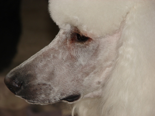 So your "free to a good home" Poodle has been one of your healthiest Poodles thus far?That must have been incredibly hard, losing such a special dog at such a young age. Can you tell us about your white Standard, is this Tyler, in the beautiful head shot?